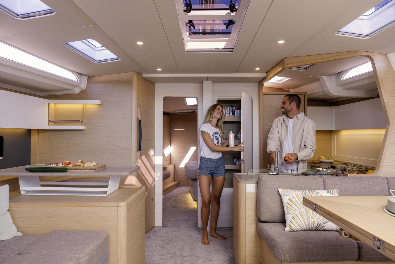 Overall, the interior of the Dufour 54 allows for a good level of customization, including configurations with multiple cabins and bathrooms, aimed at accommodating different preferences and needs.